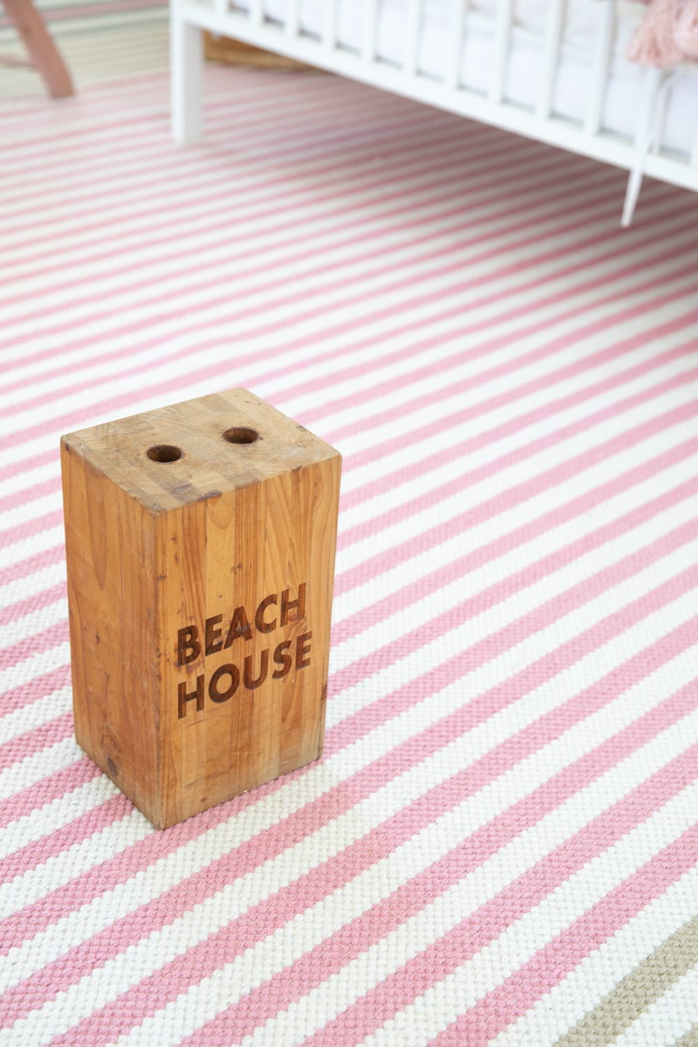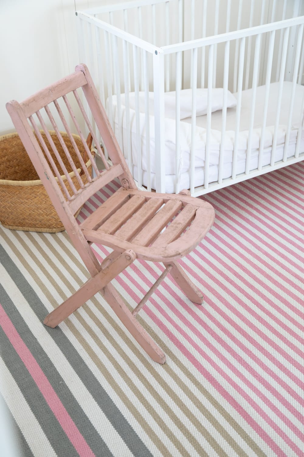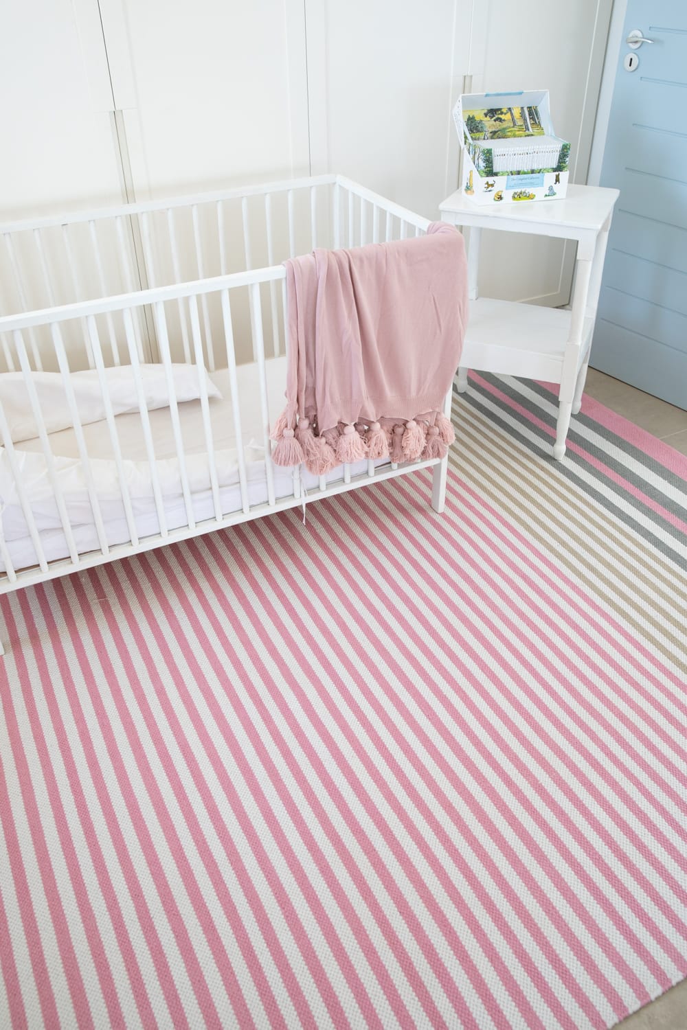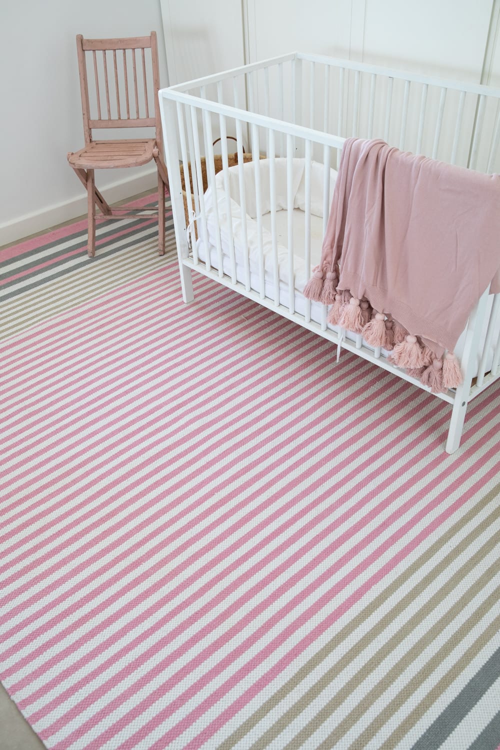 Handcrafted in India and characterised by a balanced palette of striking pink and neutral hues, this rug was designed to brighten a range of spaces, including bedrooms, playrooms, and dining rooms.