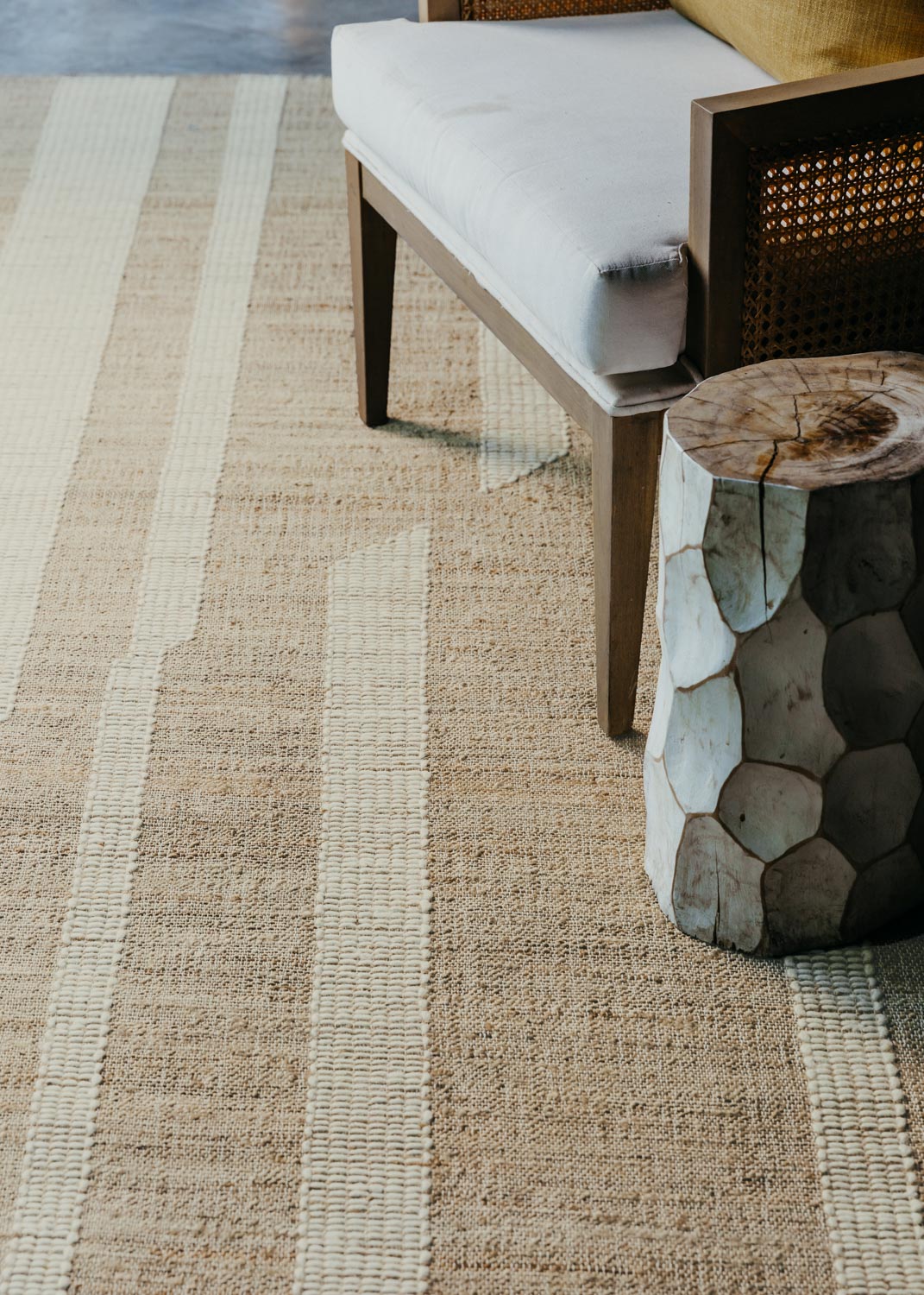 A blend of premium materials creates a luxurious mix of soft robustness, making this a great addition to your indoor spaces. Inspired by the versatility of the classic chino pants, this handwoven rug is also well suited for both formal and informal atmospheres.