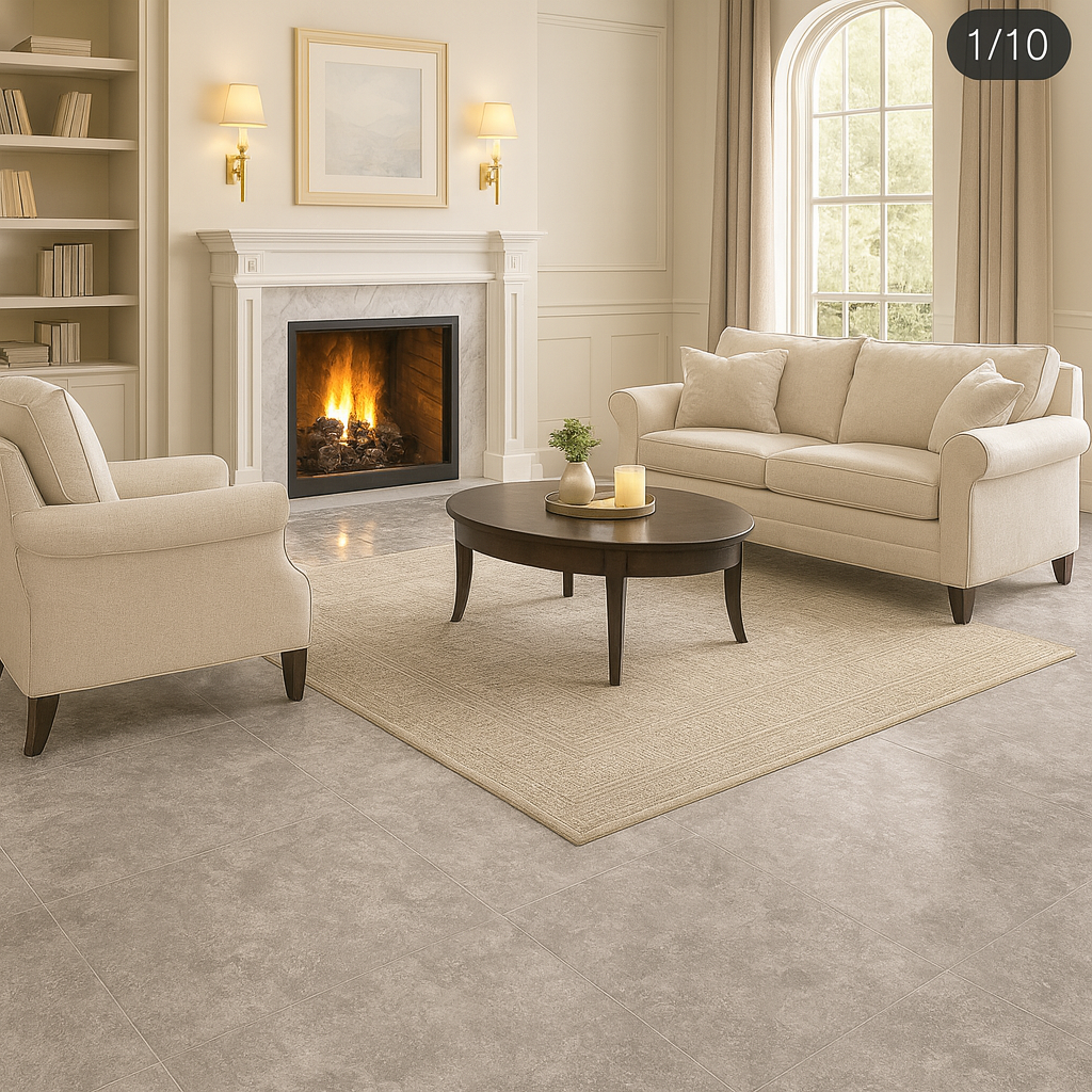 This 600x1200mm cloud grey stoneware porcelain tile offers a durable and stylish flooring or wall solution. Featuring a normal glaze and high-quality digital print on all four faces, it ensures consistent visual appeal and easy maintenance. Each box contains three tiles, covering 2.16 square meters, and weighs 46.5 kg, ideal for robust installations requiring both strength and elegance.