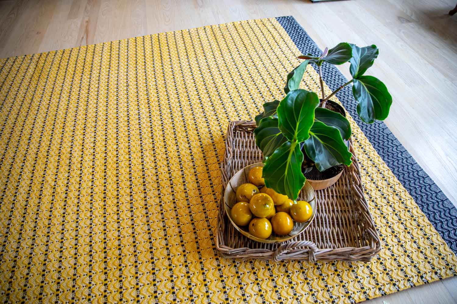 Elevate your indoor spaces with this luxurious handcrafted rug. Featuring bright and playful colours, this rug is perfect for bringing some energy into your indoor spaces.