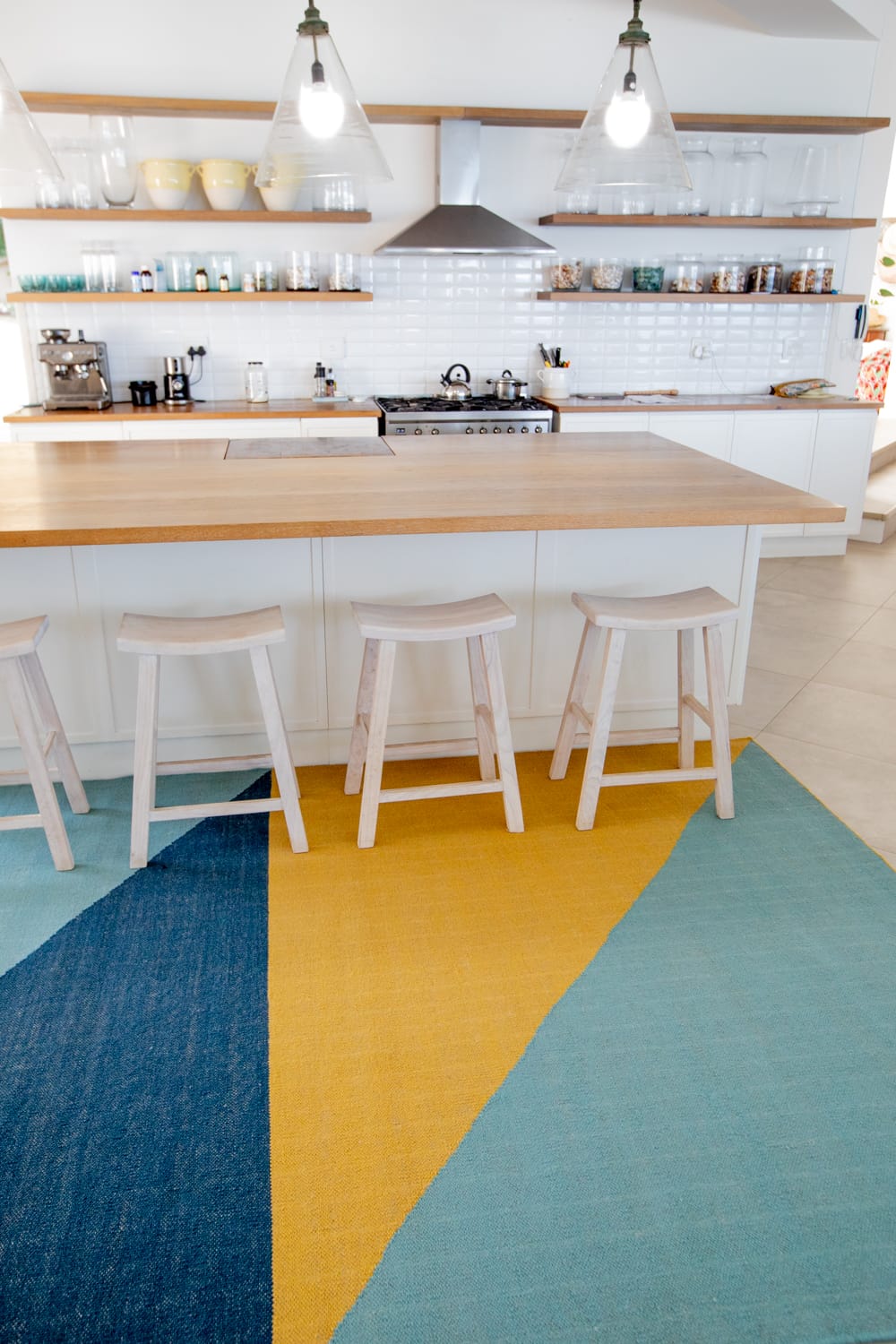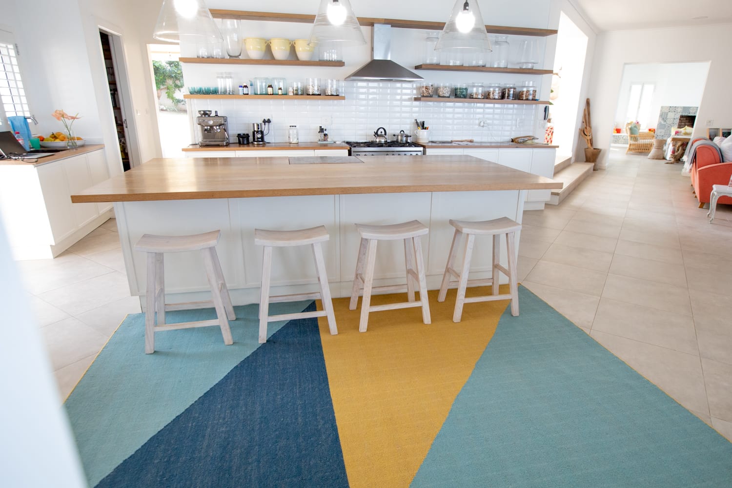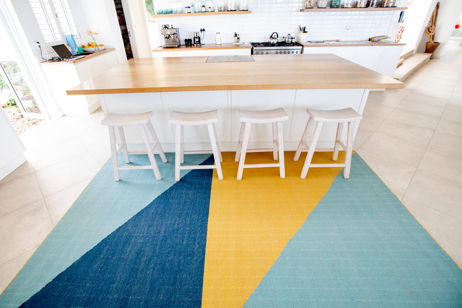 Made in India with traditional techniques, this rug features brightly coloured geometry that instantly adds energy to a space. The handwoven wool-cotton blend delivers a luxurious softness underfoot that can be enjoyed in any indoor space. Fezzy’s size and striking design also make it perfect for distinguishing an area within a larger space.