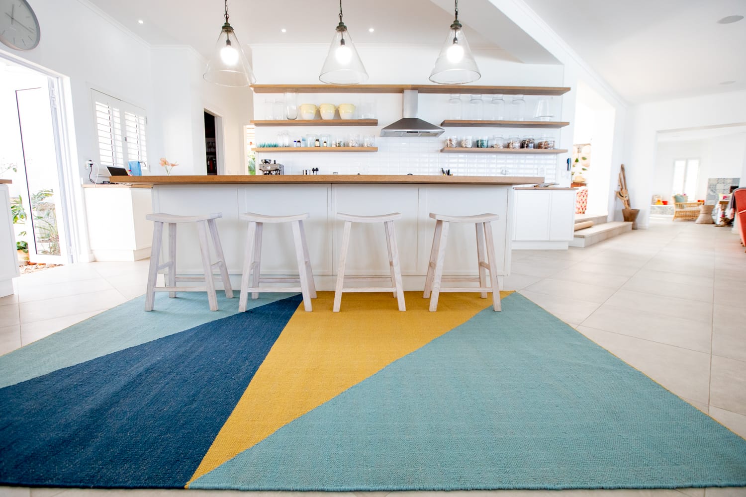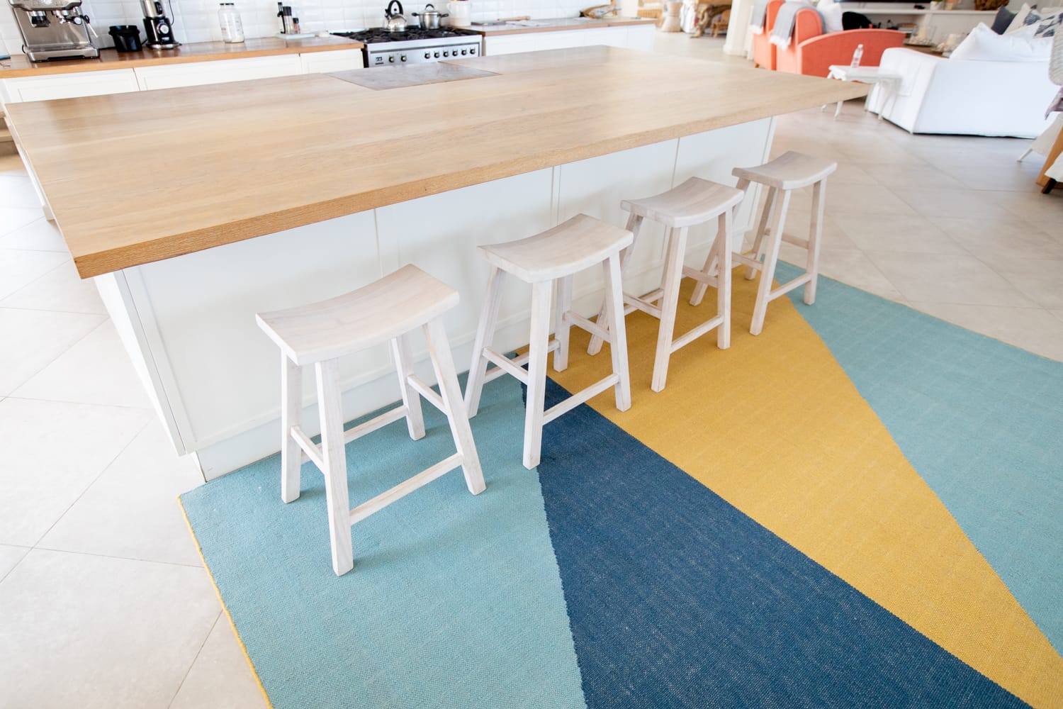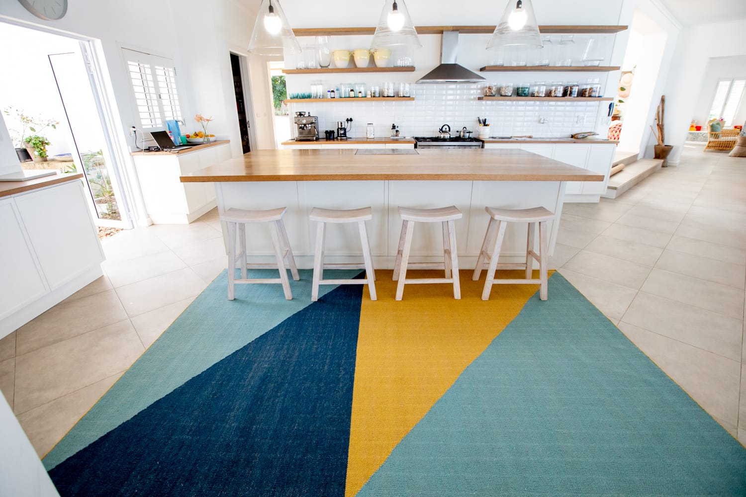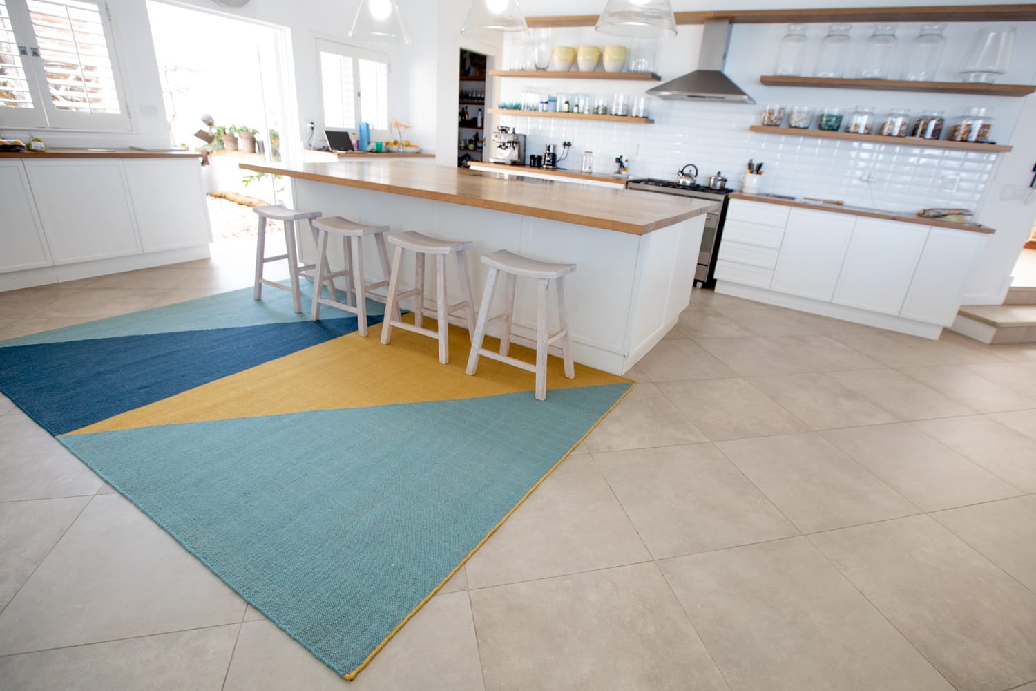 Made in India with traditional techniques, this rug features brightly coloured geometry that instantly adds energy to a space. The handwoven wool-cotton blend delivers a luxurious softness underfoot that can be enjoyed in any indoor space. Fezzy’s size and striking design also make it perfect for distinguishing an area within a larger space.