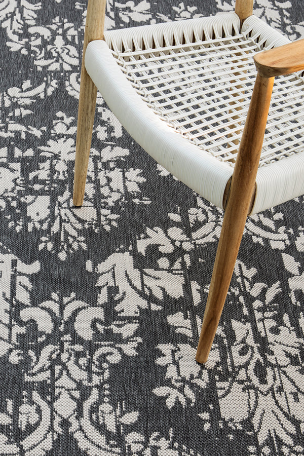 This Rug features a distressed large contemporary damask design in silhouette named after a classic weave structure.
