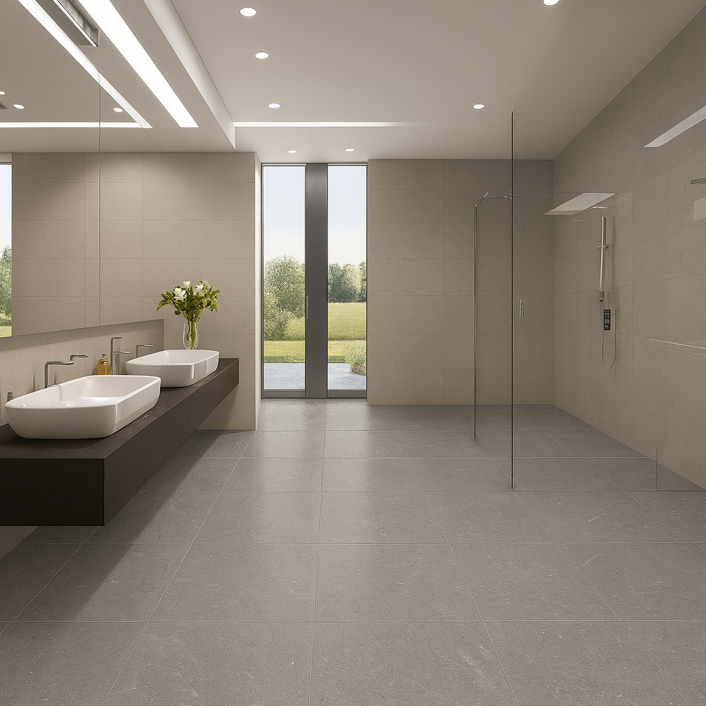 Fossil Galaxy stoneware porcelain tiles measure 600x1200mm and feature a pigment glaze with high-quality 6-face digital printing for a natural, dynamic look. Each box contains 3 pieces covering 2.16 sqm, weighing 46.5 kg, making them ideal for durable, elegant flooring or wall applications requiring both beauty and strength.