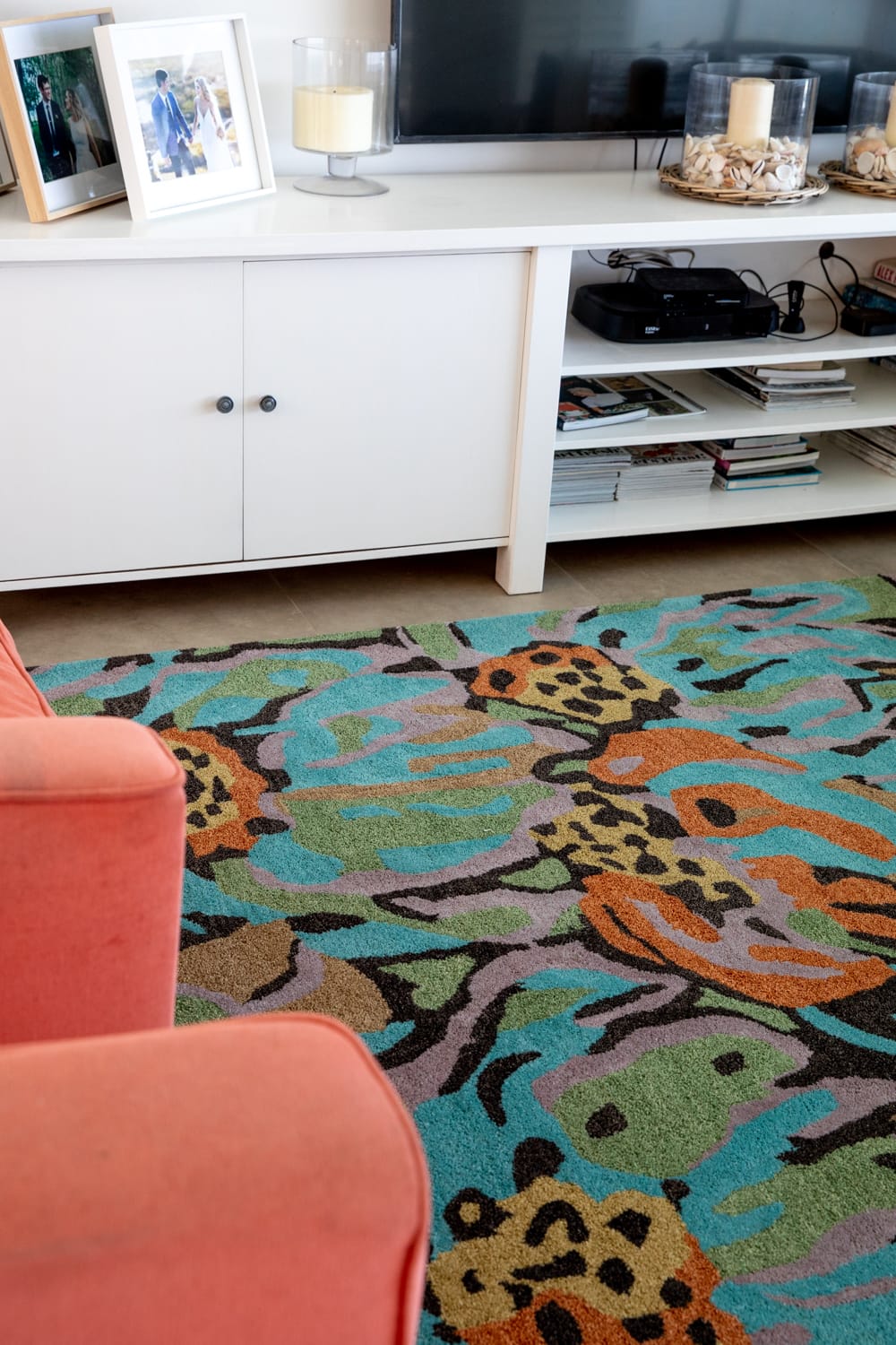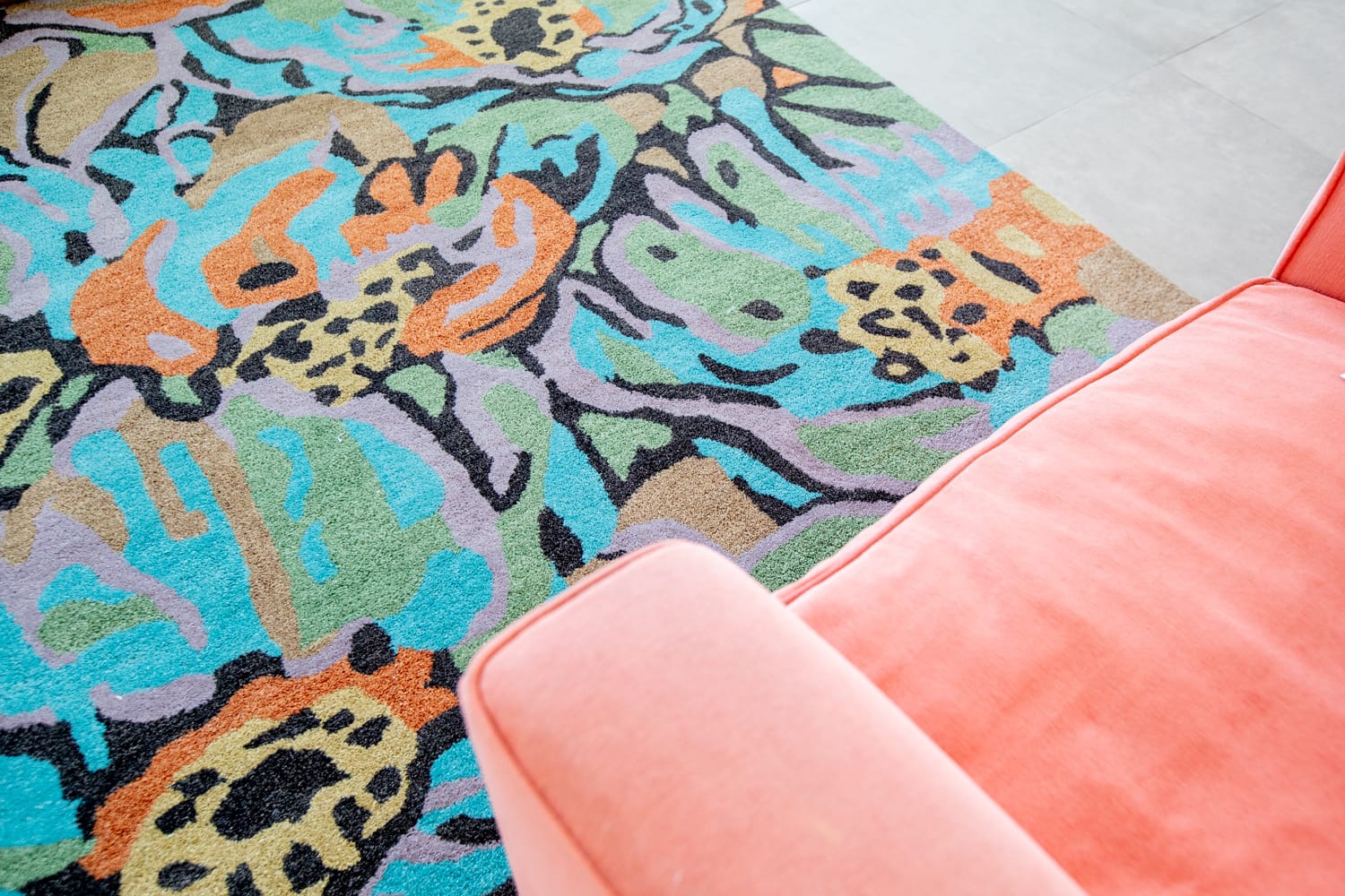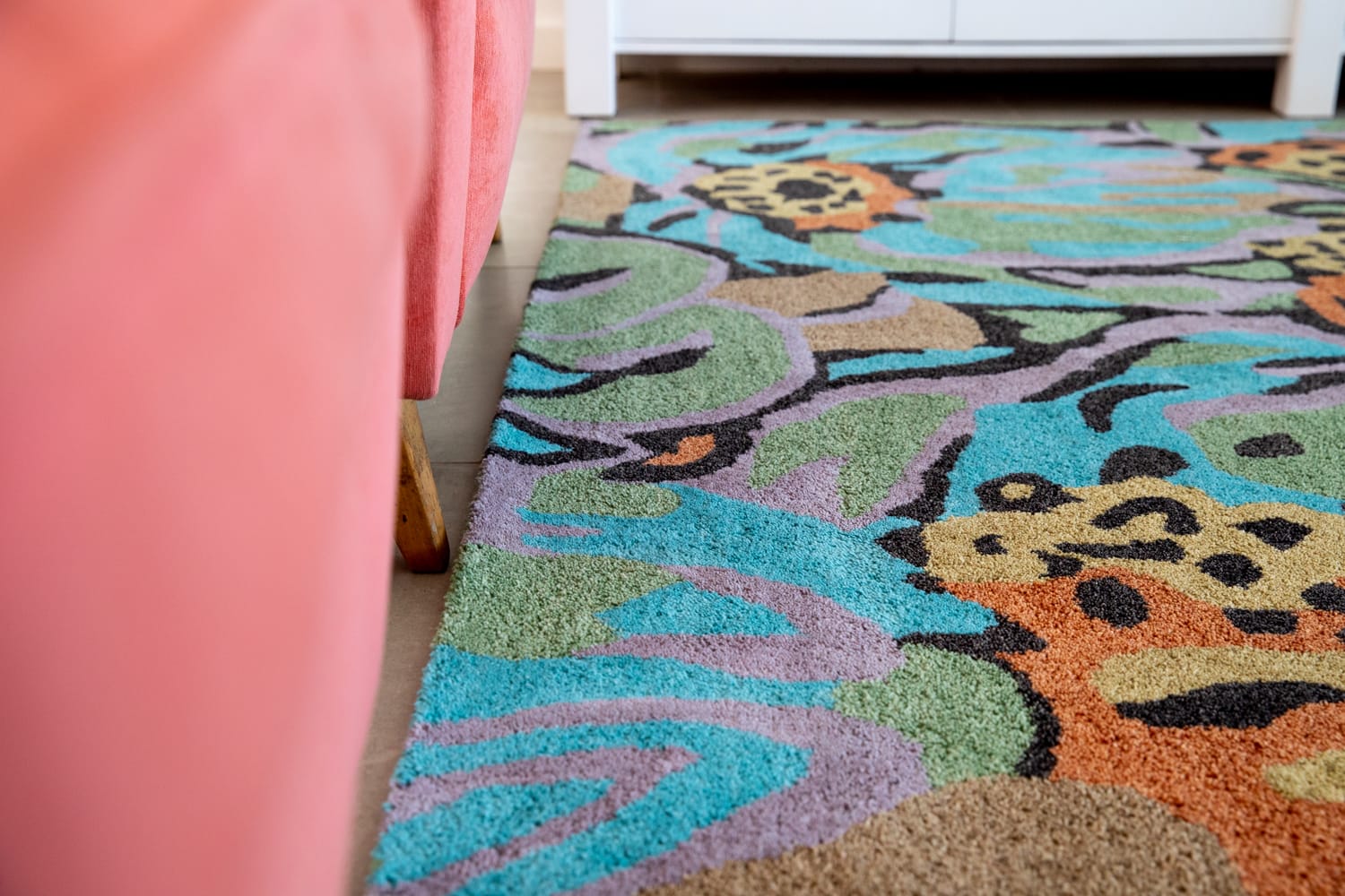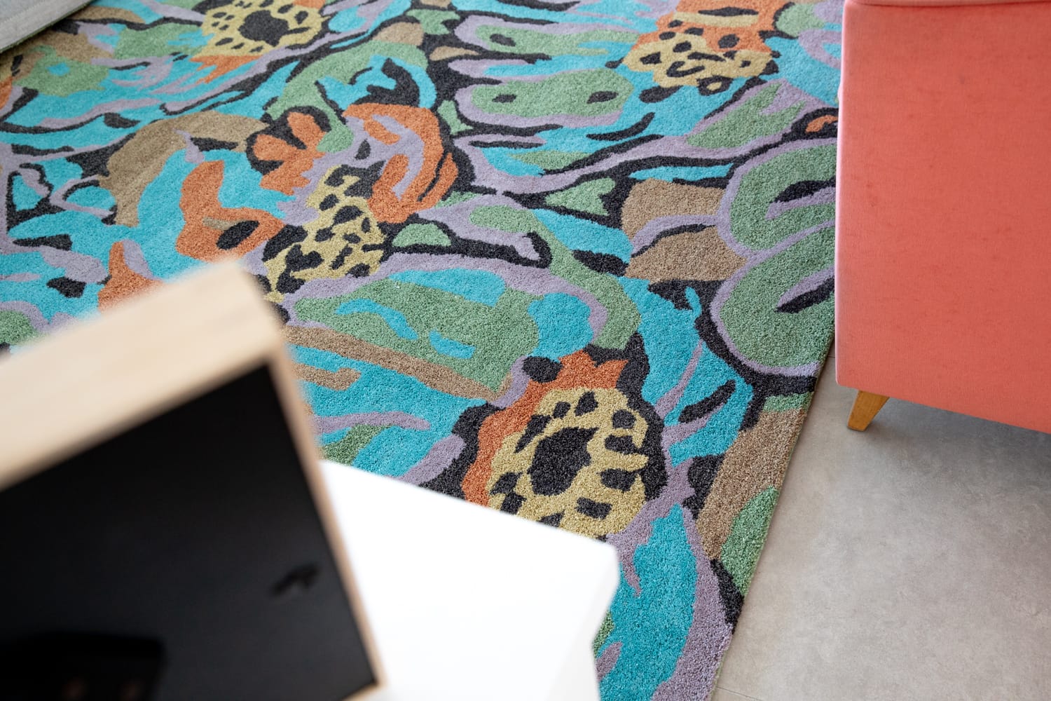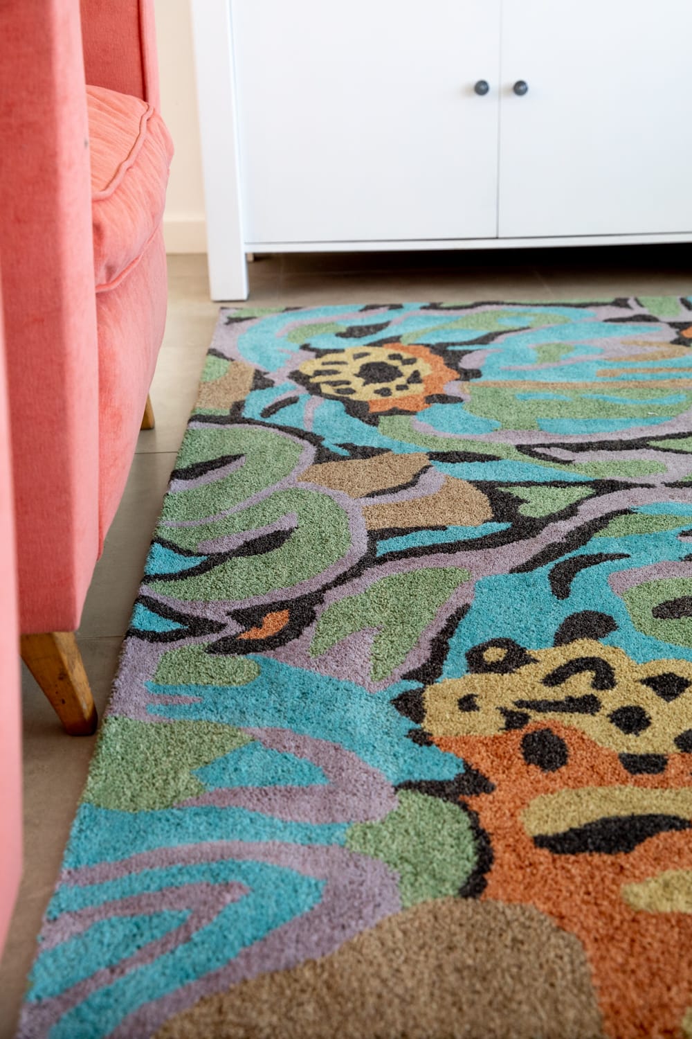 Create a vibrant atmosphere with this 100% wool head-turner. With bold colours and organic forms that transport you to a lush wilderness, this handwoven rug is an excellent way to liven up your indoor spaces.