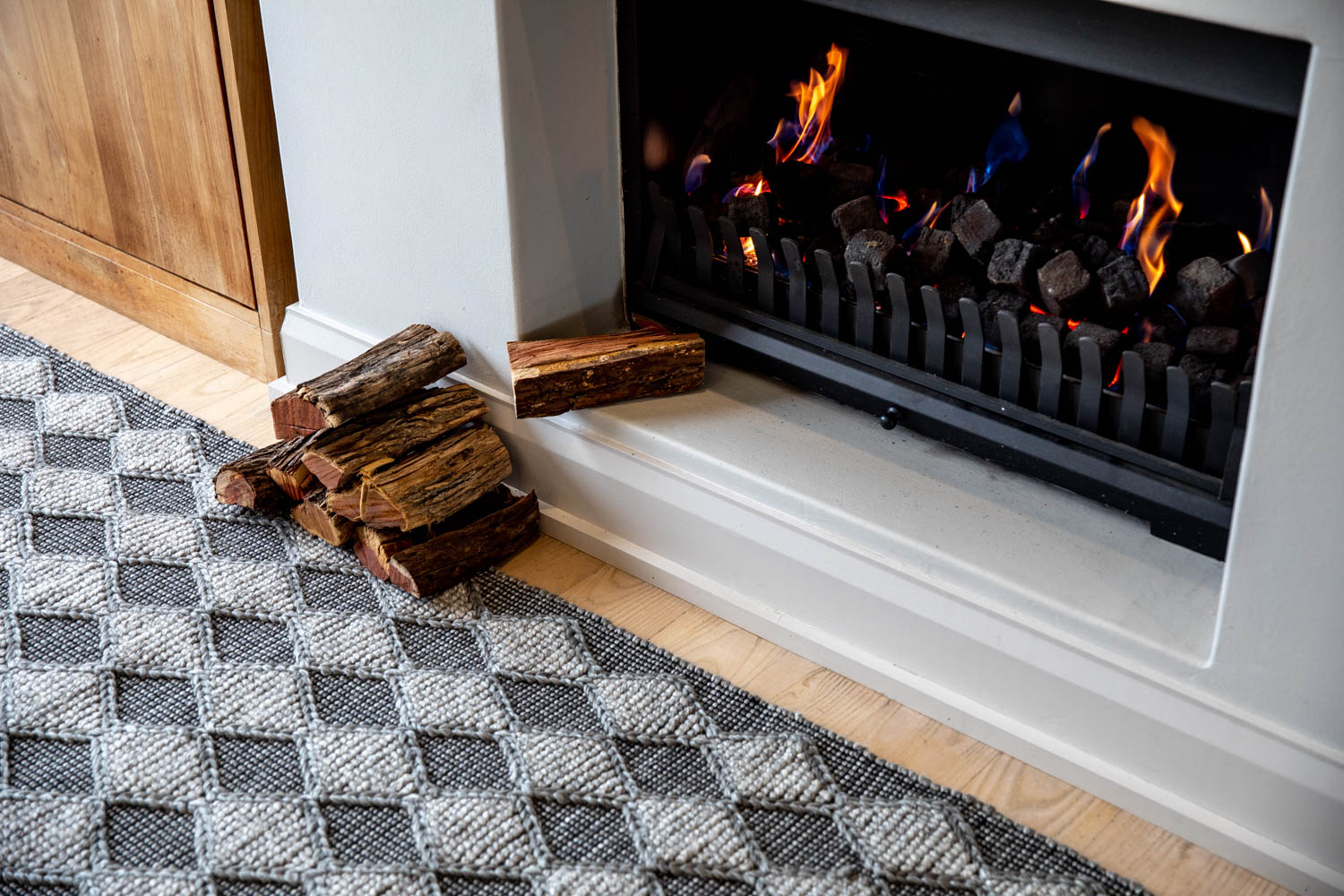 With striking forms balanced by a subdued colour palette, this rug helps create an optimistic atmosphere in your indoor spaces. Handwoven with traditional techniques, its luxurious fibres lend a comforting texture underfoot.