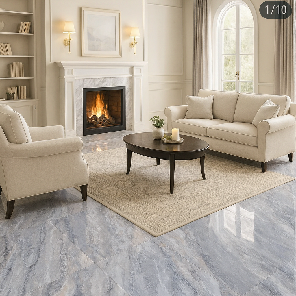 This Ocean Blue tile, measuring 600x1200mm, combines durable stoneware porcelain with a sleek white glaze for a refined finish. Featuring a digital print on 10 faces, it offers versatile aesthetic options. Each box contains 3 pieces, covering 2.16 square meters, and weighs 46.5 kg, making it suitable for various commercial and residential projects requiring both strength and style.