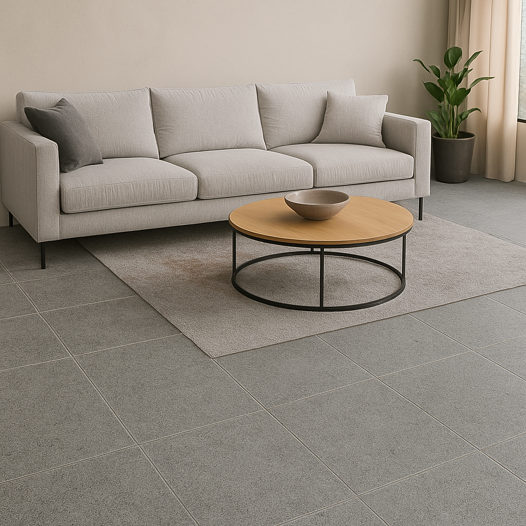 Pietra Griggio Rough A/S is a 600x600mm stoneware porcelain tile featuring advanced digital multi-face printing for a natural, varied appearance. Each box contains 4 pieces covering 1.44 sqm and weighs 30 kg, ensuring durability and ease of handling. Ideal for creating sophisticated, long-lasting surfaces with expert precision.