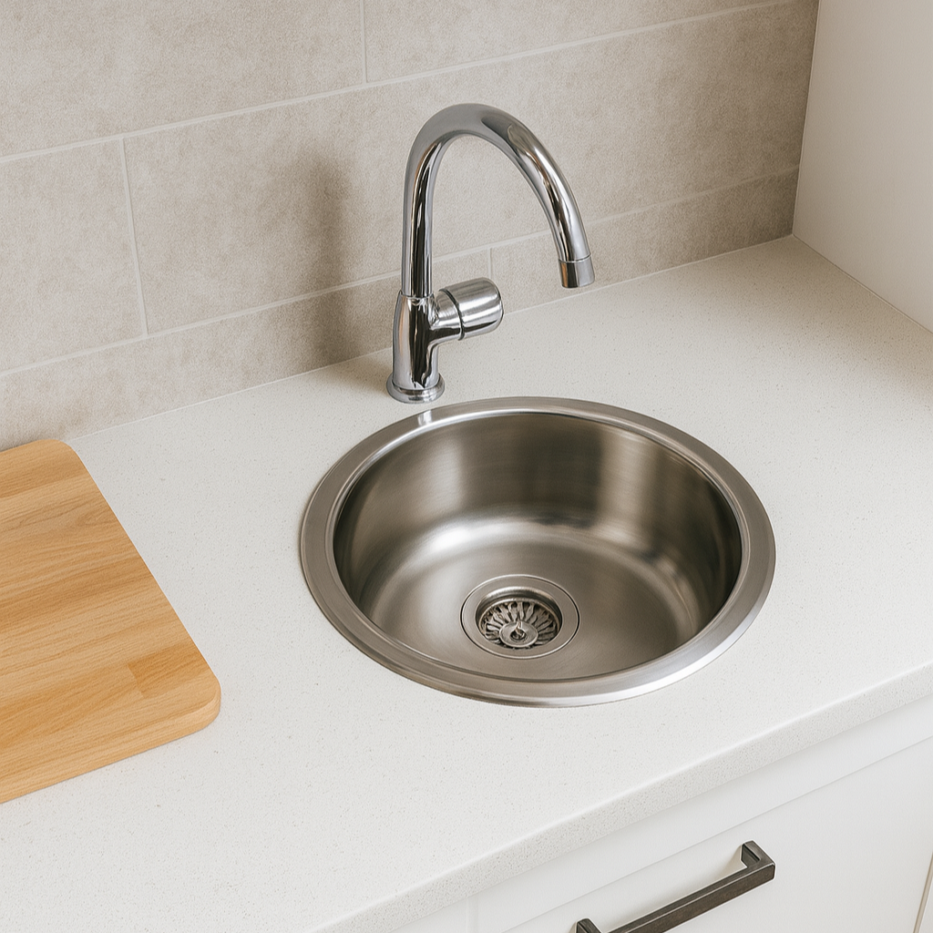 The Redondo Prep Bowl Rocca is a durable stainless steel single-bowl kitchen sink designed for efficient food preparation. Measuring 450 mm in length and width with a height of 175 mm, it offers ample space while maintaining a compact footprint. Its robust construction ensures long-lasting performance and resistance to corrosion, making it an ideal choice for both residential and professional kitchens.
