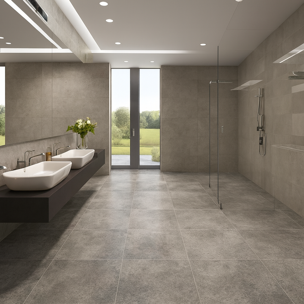 Royal Stone Grey porcelain stoneware tiles offer durable elegance with their 600x1200mm size and digitally printed six-face design, ensuring a unique and refined appearance for your spaces. The white glaze enhances brightness while providing a smooth, easy-to-clean surface. Each box contains three pieces covering 2.16 sqm and weighs 46.5 kg, making them ideal for both residential and commercial settings requiring sturdy, high-quality flooring.