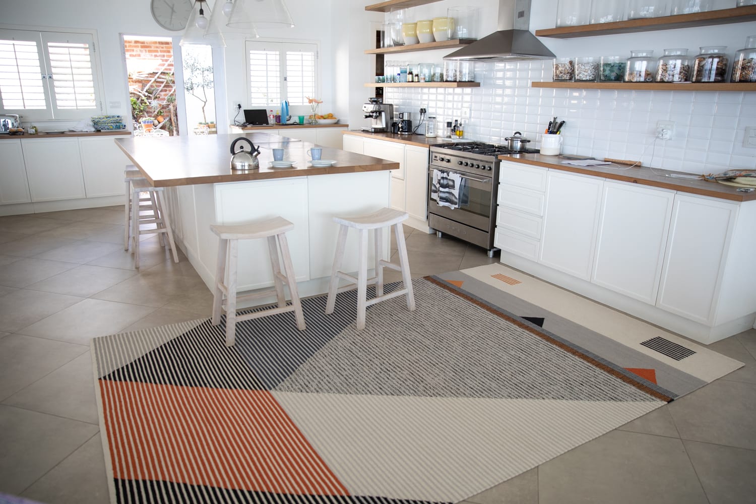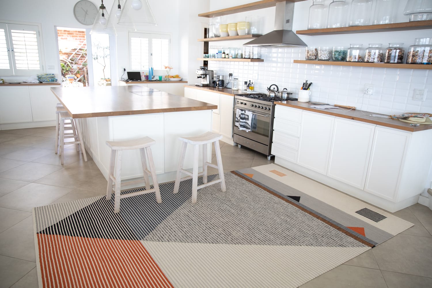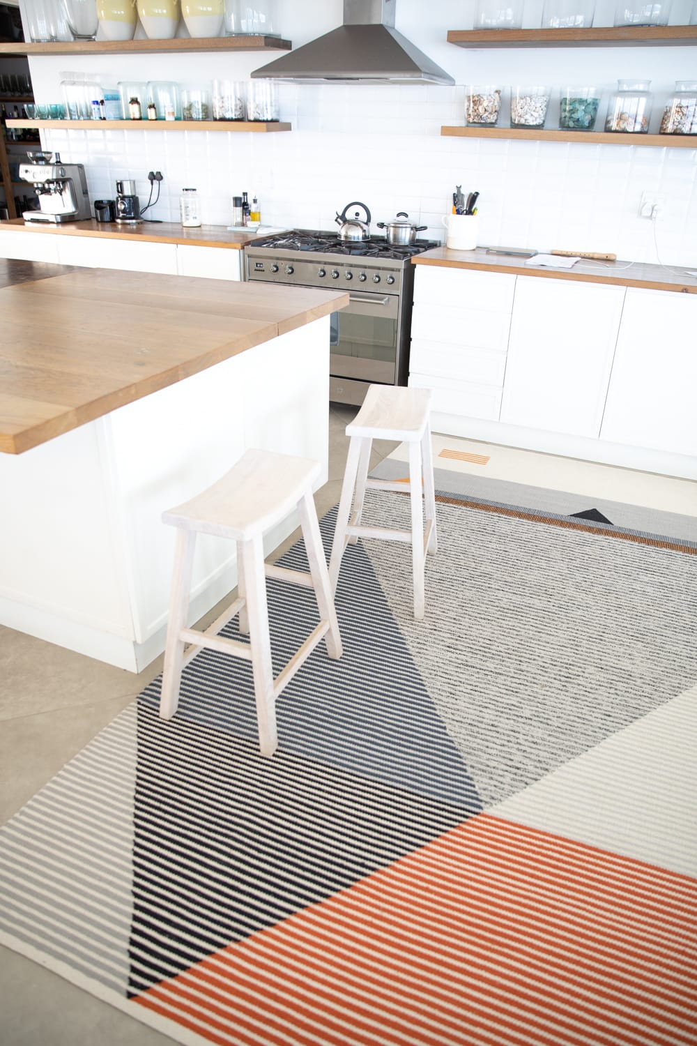 With its striking handwoven geometric pattern, this rug expertly blends the character of traditional craftsmanship with modern design. This 100% cotton dhurrie is a great choice for bringing a soft feel and striking visuals to your indoor spaces.