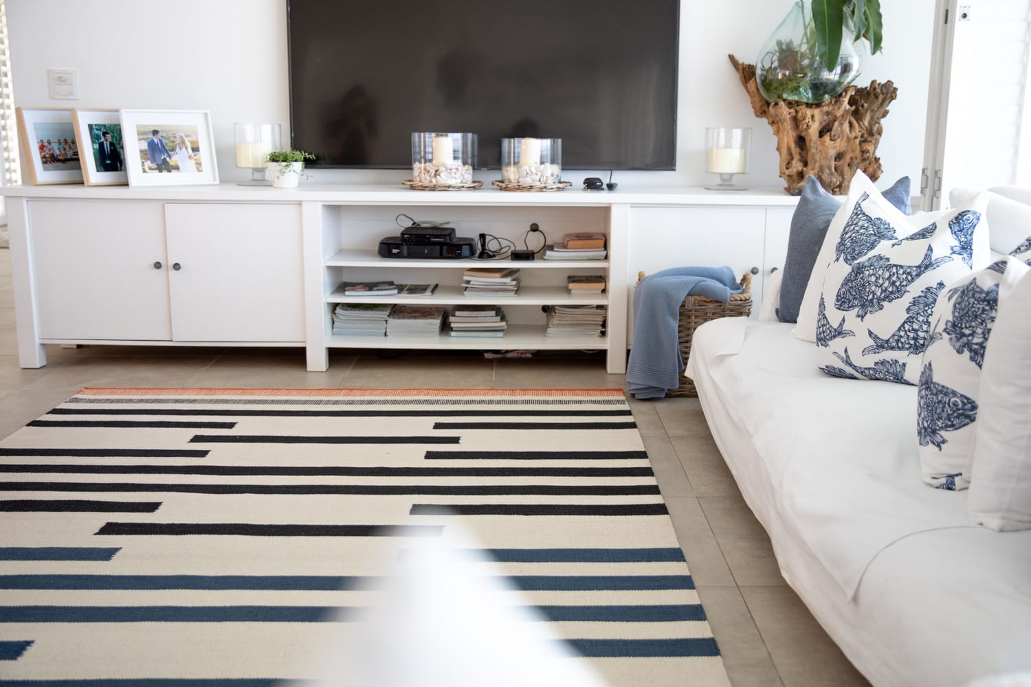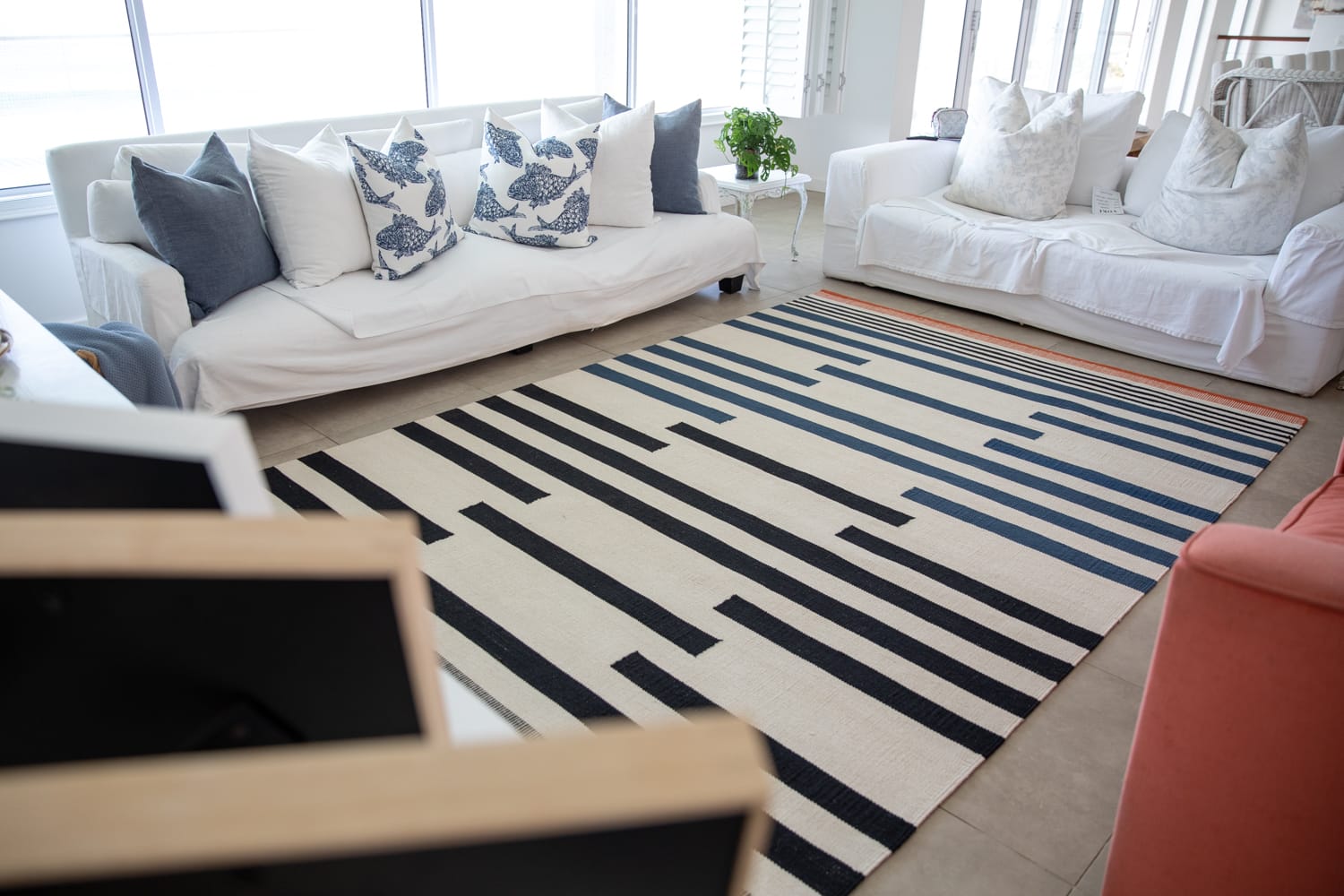 Featuring sharp lines and uplifting colours, this handwoven statement piece was designed to evoke a sense of joy in your indoor spaces. Not only a delight to look at, this rug’s soft 100% cotton construction means it’s also a pleasure to walk across.