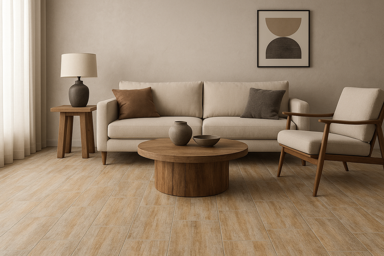 Zebula Grey Woodgrain porcelain tiles measure 600x600mm and come in boxes of four, covering 1.44 square meters. Crafted from durable stoneware porcelain, these tiles feature a digital multi-face print that replicates natural woodgrain with expert precision. Each box weighs 30 kg, ensuring solid quality and longevity suitable for various interior applications. Ideal for those seeking the aesthetic appeal of wood combined with the resilience of porcelain.